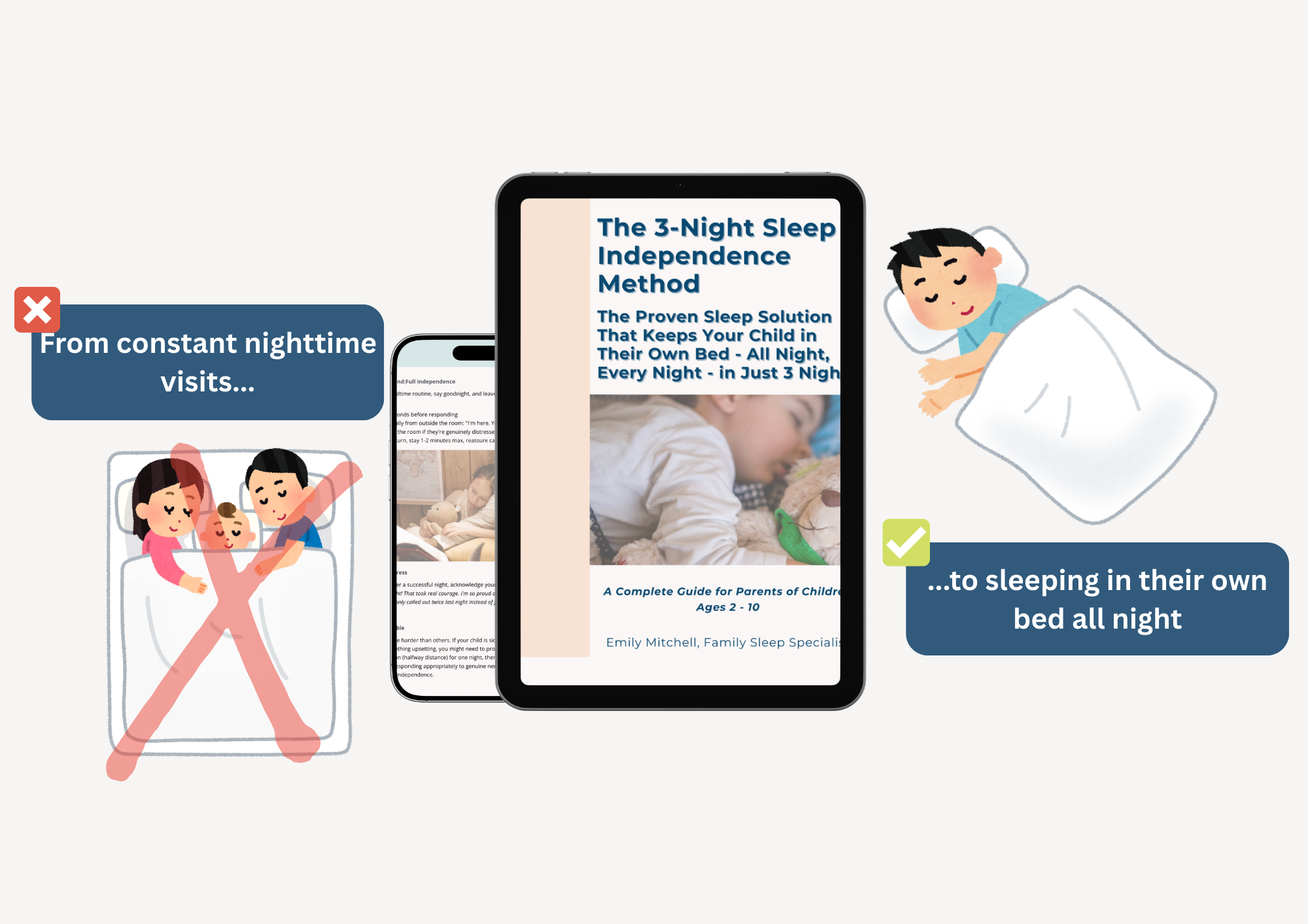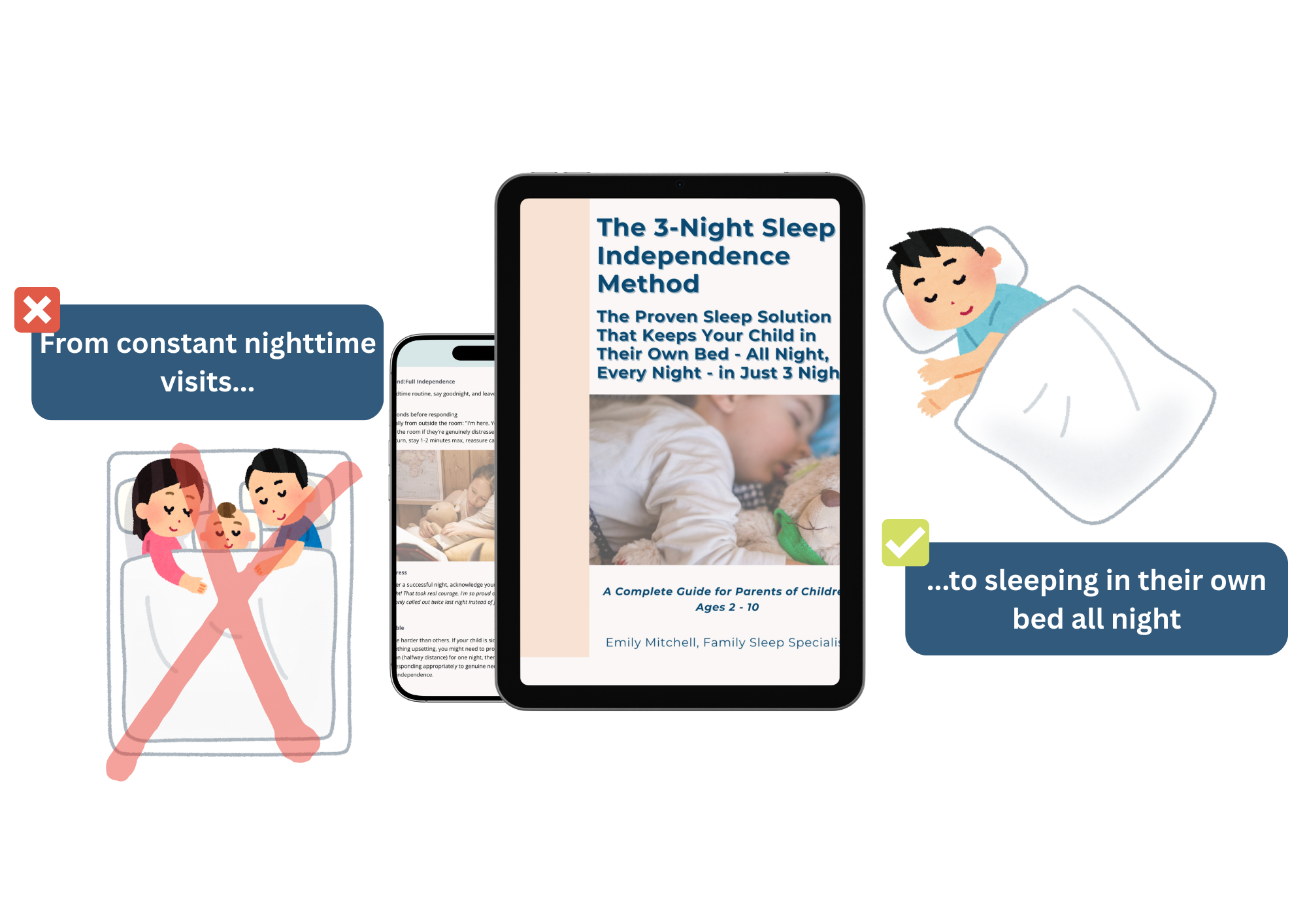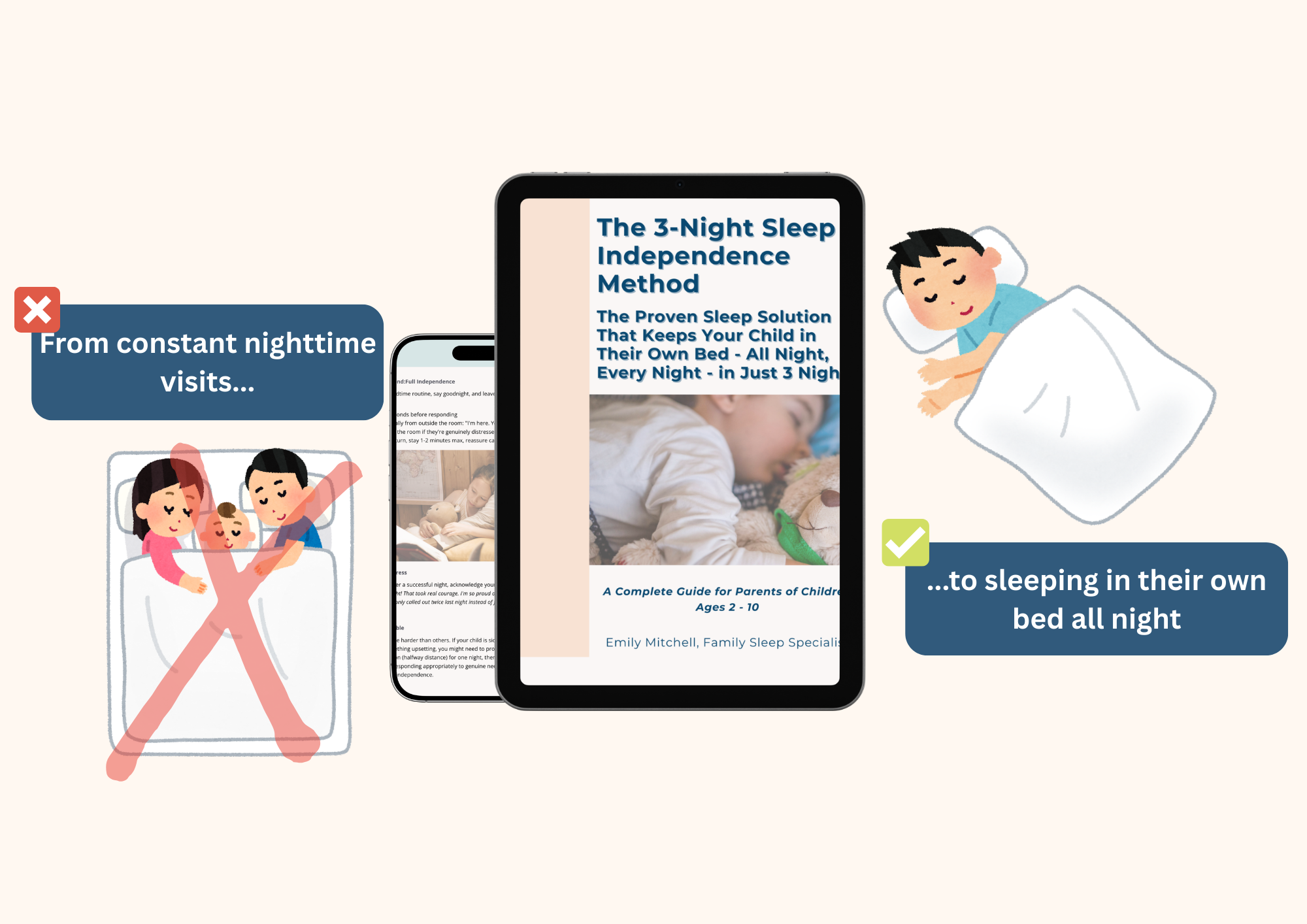 Because this isn't "cry it out" or generic sleep tips. It's a complete system that addresses the emotional, behavioral, and environmental factors that impact sleep. Most families see results within 3-7 nights.